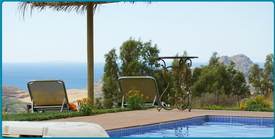 Leading from the living room to the south, there is a spacious terrace with stunning views to the Preveli Monastery and to Plakias, Damnoni, Souda and Frangokastello.