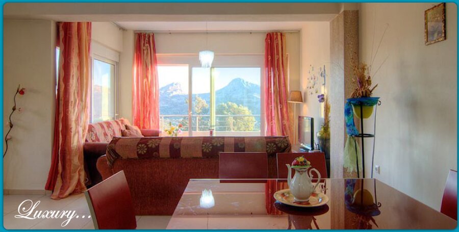 The villa is a two storey building, with the kitchen and the livingroom upstairs on the first floor and at the groundfloor there are the 4 bedrooms. Two of them have sea and mountain view and the third only mountain view.