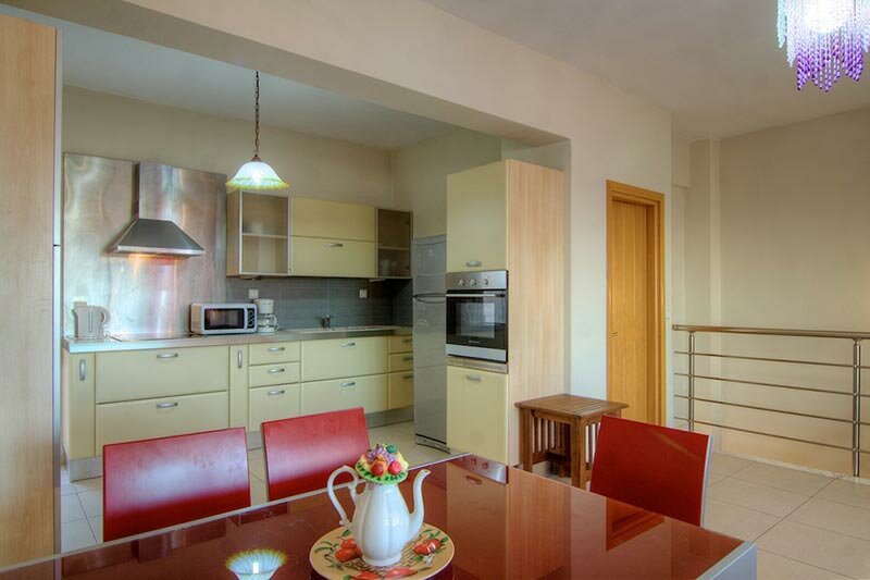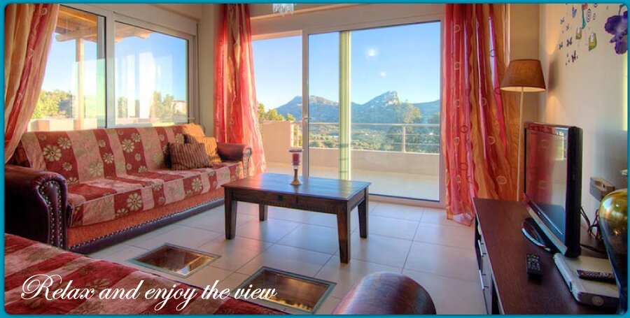 The villa is a two storey building, with the kitchen and the livingroom upstairs on the first floor and at the groundfloor there are the 4 bedrooms. Two of them have sea and mountain view and the third only mountain view.