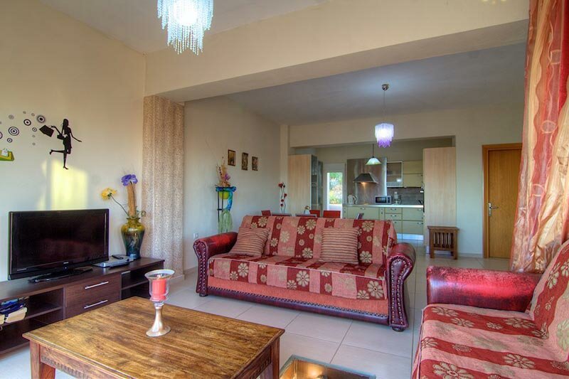 Leading from the living room to the south, there is a spacious terrace with stunning views to the Preveli Monastery and to Plakias, Damnoni, Souda and Frangokastello.